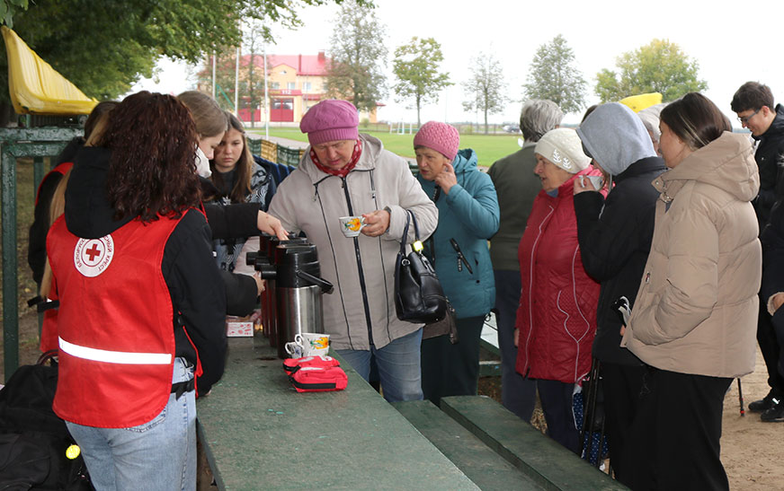 Несмотря на пасмурную и холодную погоду, все преодолели дистанцию бодро и с удовольствием. На финише их ждал горячий чай и угощения от местного Красного Креста, предложенные волонтёрами.